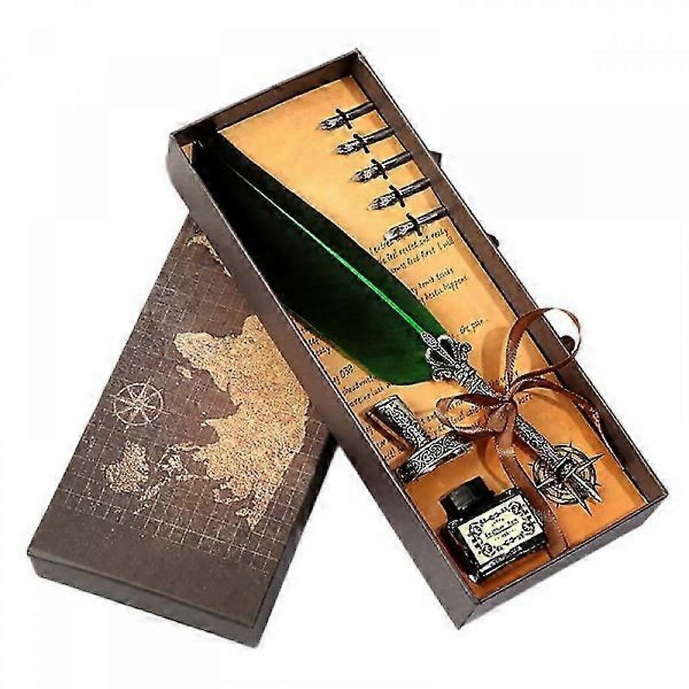 Dip Pen Calligraphy Feather Writing Ink Bottle Set with 5 Replaceable Nibs & Pen Nib Base compatible with Stationery Gift.