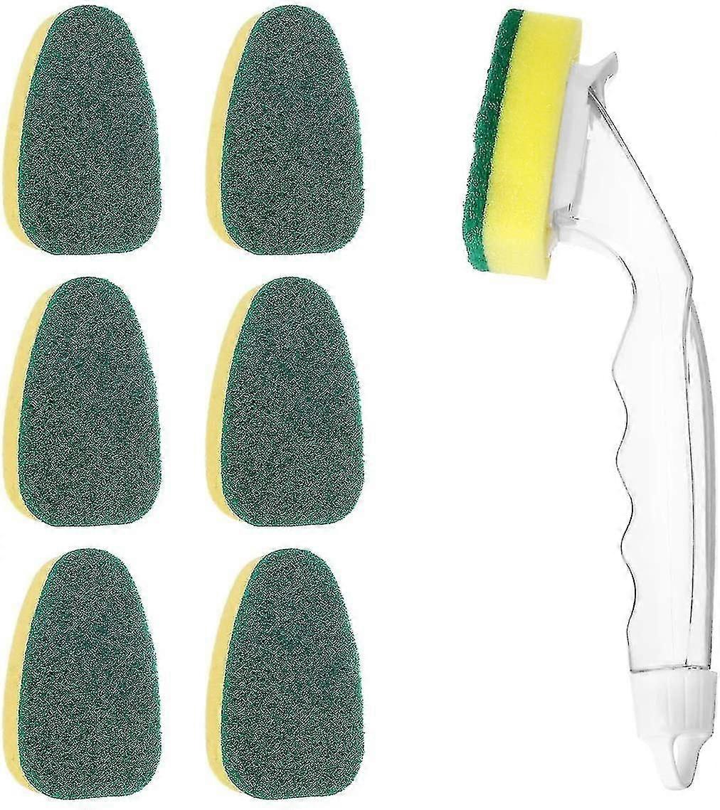 Dish Wanddish Sponge With Handle Replaceable Cleaning Brush