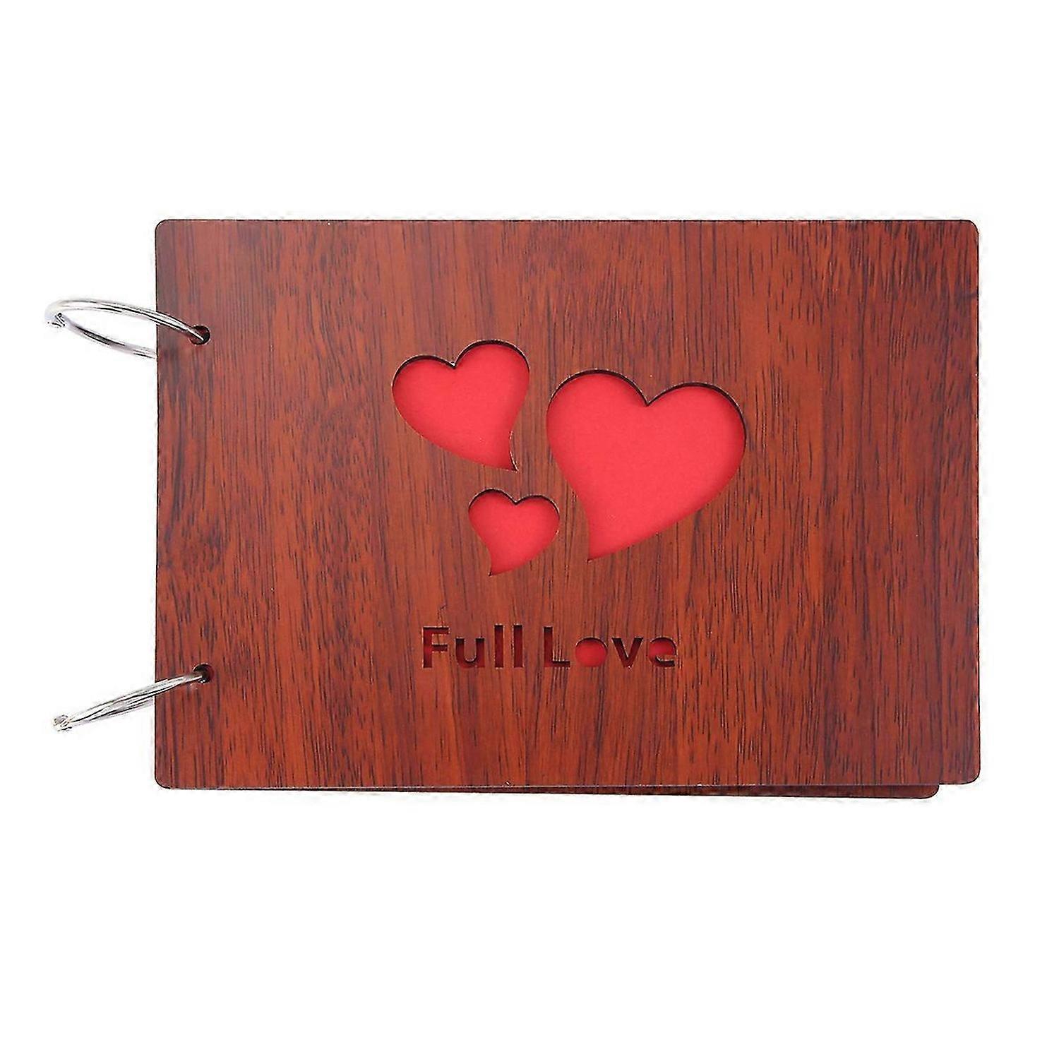 DIY Photo Album Wood Cover Anniversary Scrapbook 8 X 6 inches Self-adhesive Picture Book with Black