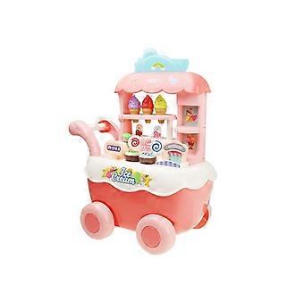 DIY تجميع محاكاة عربة الآيس كريم نموذج LED الموسيقى أطفال التظاهر باللعب لعبة الوردي