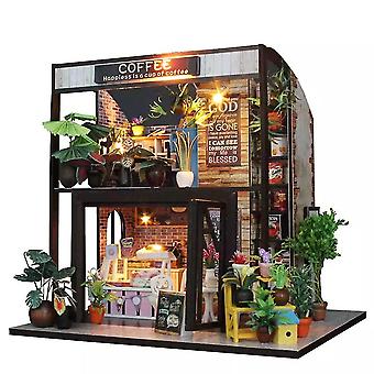 Diy Wooden Miniature Cafe House Dollhouse With Furniture Led Light Toy Gift
