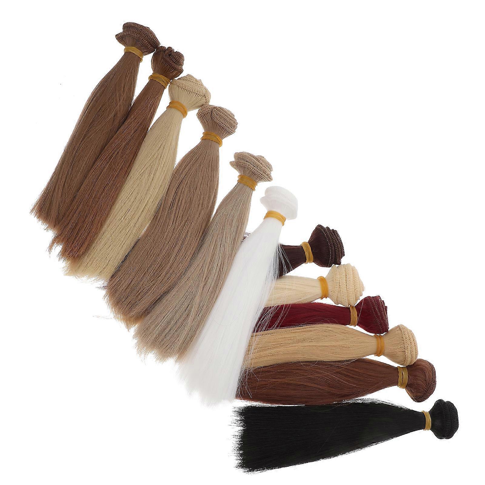 DIY Making Heat Resistant Straight Hair Wig Doll Wigs Weft Extensions Assorted Color 100x15cm High Temperature Silk 12Pcs