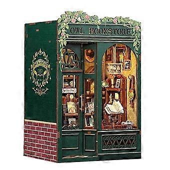 DIY Book Nook Owl Bookstore Kit, 3D Wooden Puzzle Bookend compatible with Bookshelf Decor, with Ligh