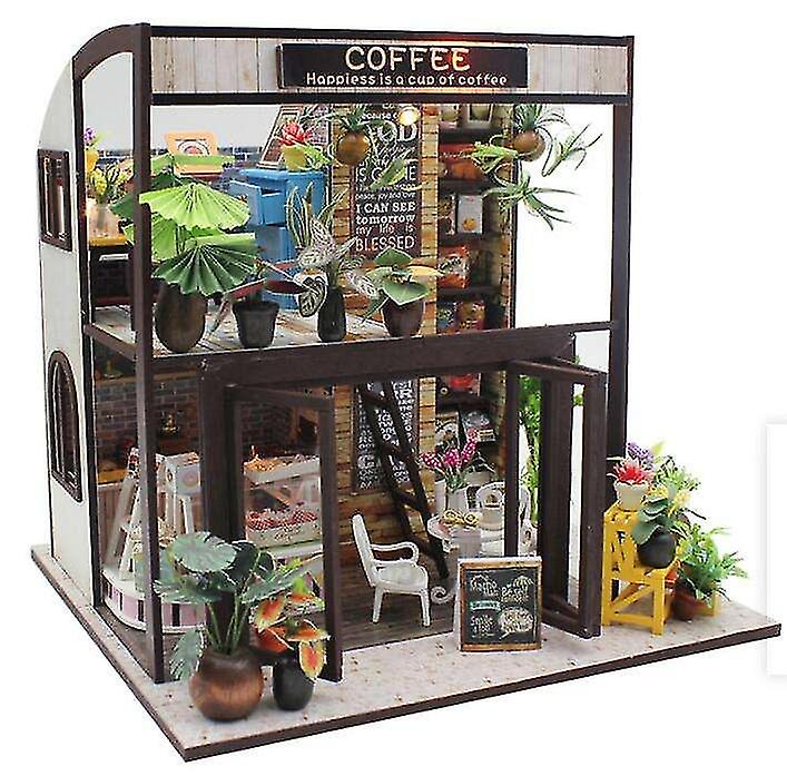 Diy Miniature Dollhouse Kit, 1:24 Scale Tiny House Building Kits Coffee House