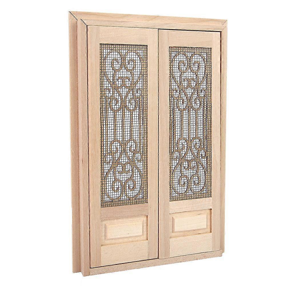 DIY 1: 12 Doll House Miniatures Hollow Wooden Door Set Children Funny Toy Gift Decor