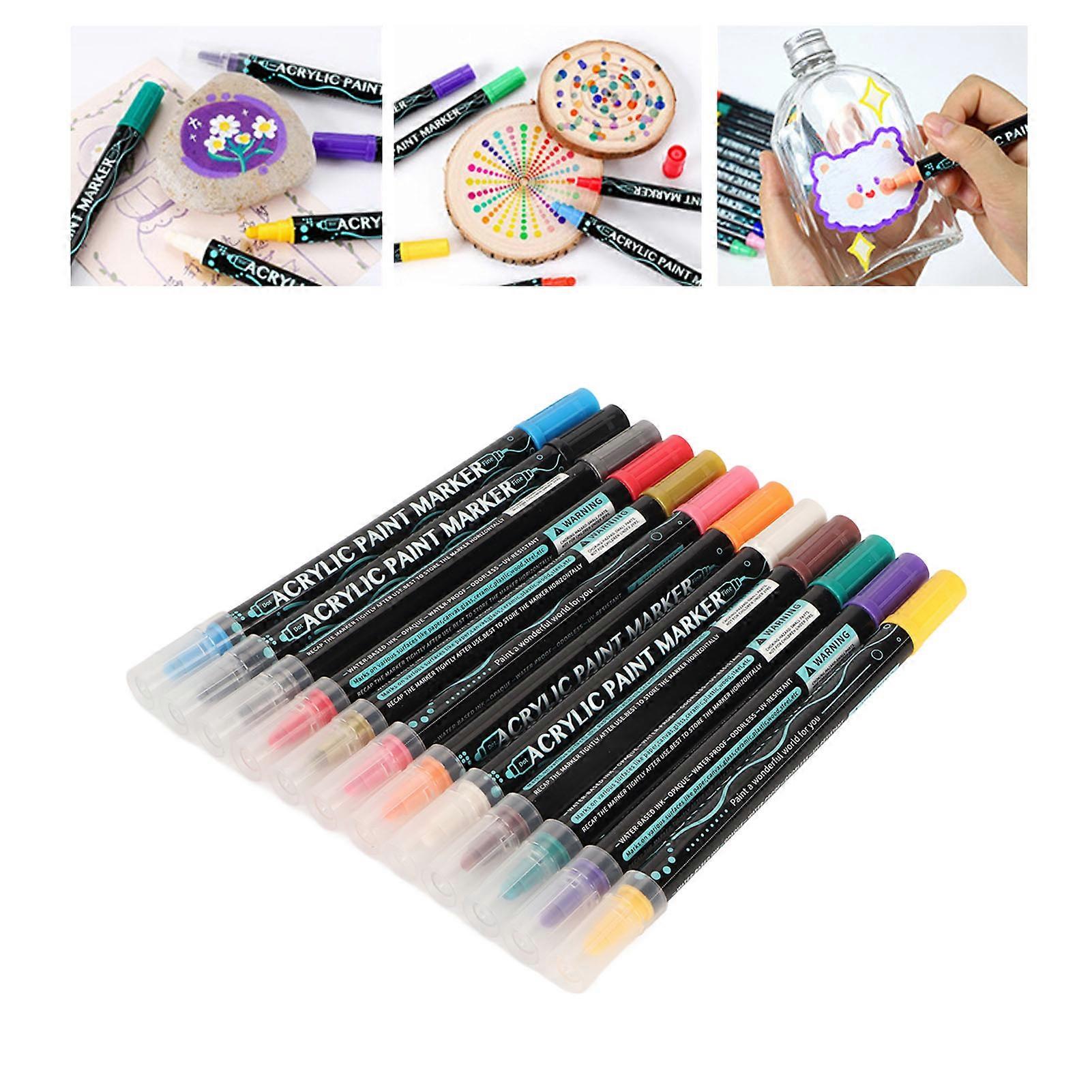 Dual Tip Acrylic Paint Marker Pen Set for DIY Crafts and Art Projects 12 Color
