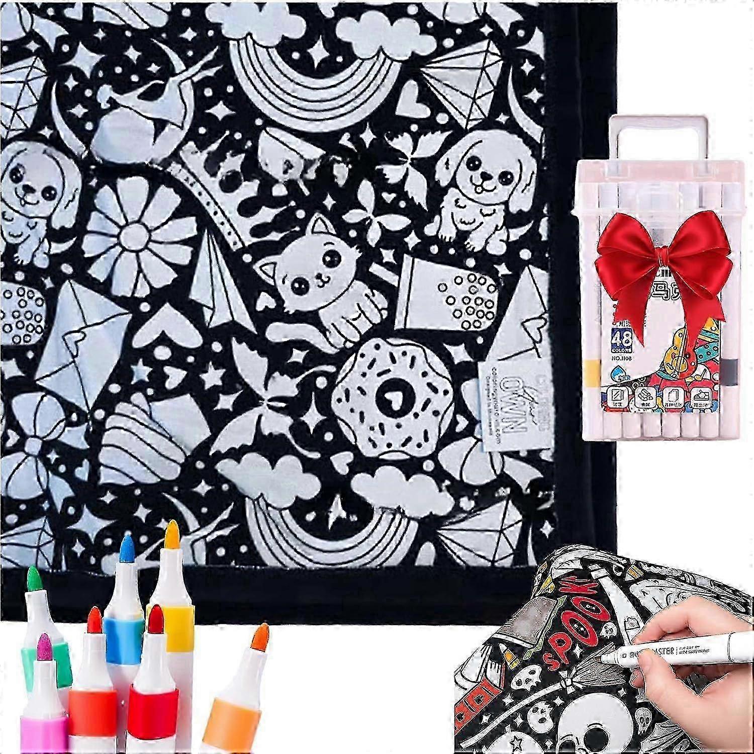 DIY Coloring Blanket, Color Your Own Blanket, Fuzzy Velvet Washable Blankets You Can Color, Color Blankets with 24 Colors Marker Pens