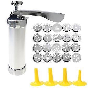 Baking Tools Manual Biscuit Cookie Press Stamps Set Cake Decorating Tools Maker with 4 Nozzles 20 Cookie Molds Cookie Press,Cookie Press Gun Kit, DIY Biscuit maker and Churro Maker with 20 Decorative Stencil Discs and 4 Icing Tips for Funny Kitchen Description: Features: brand new and high quality. Sturdy stainless steel: Won'for t crack or rust. Strong enough for cheese straws and churros. Application: it can be used as a practical home kitchen appliance for twenty types of biscuits. It also provides four nozzles to make biscuit machine and make decorative cake by hand. Mechanical control, product size, thickness, precise and consistent. As a decorative tool use, press the front end of the handle button, use the above operating rod, the extrusion is under your control. Specifications: Item Type: Cookie Machine Material: Aluminum Alloy, ABS Plastic Color: Silver Size: (Approx.) Diameter: 5.5cm(2.17in) Height: 21cm(8.27in) Quantity: 1 Set Note: 1.Transition: 1cm=10mm=0.39inch 2.Please allow 0-1cm error due to manual measurement. pls make sure you do not mind before you bid. 3.Due to the difference between different monitors, the picture may not reflect the actual color of the item. Thank you! Package includes: (No retail package) 1 x Cookie Machine 20 x Design Discs 4 x Icing Tips 1 x User Manual