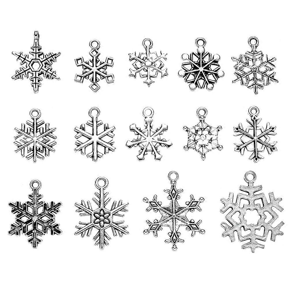 DIY Snowflake Pendants for Bracelet Making in Silver Alloy with Mini Hole Design 70pcs 14 Styles