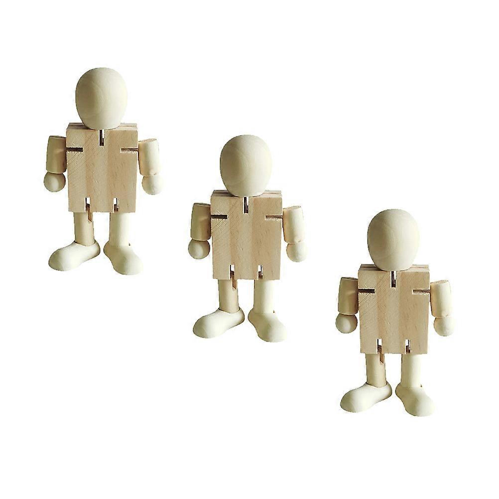 DIY Wooden Robot Dolls for Playing 3Pcs Unfinished Painting Puppets Set