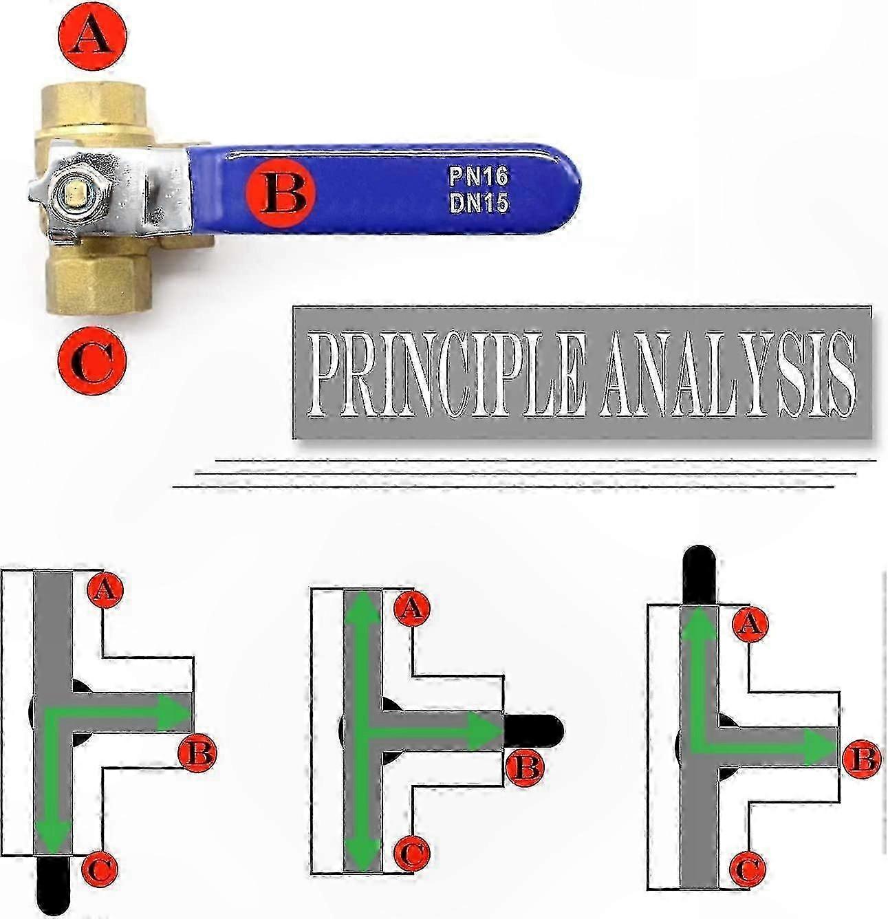 Dn15 1/2 Inch 3-Way Ball Valve, Brass Water Tap Splitter for Water, Oil, and Air with Internal Thread Connection