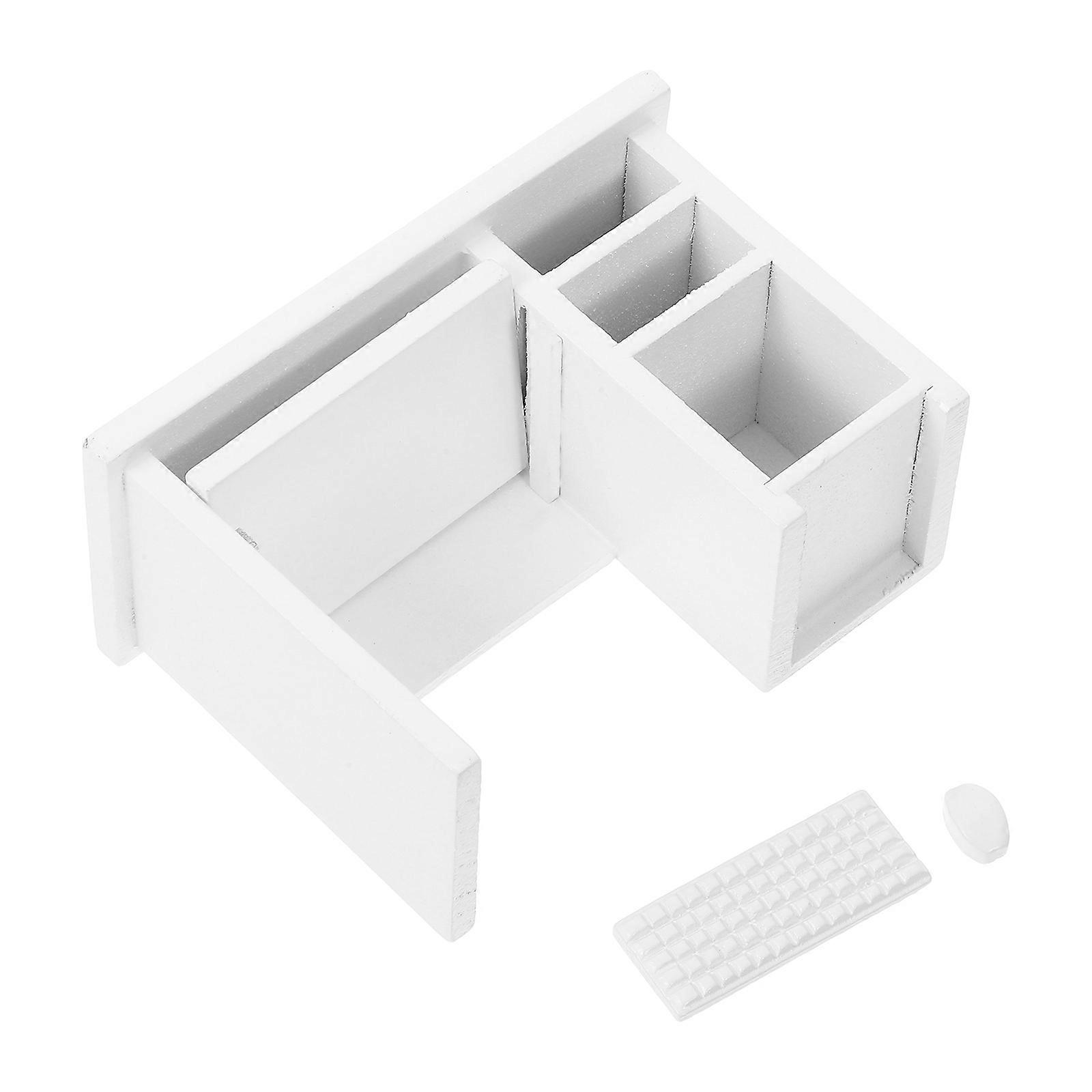Dollhouse Computer Desk Miniature Furniture 1:12 Scale White Square Design Easy Assembly 1Set
