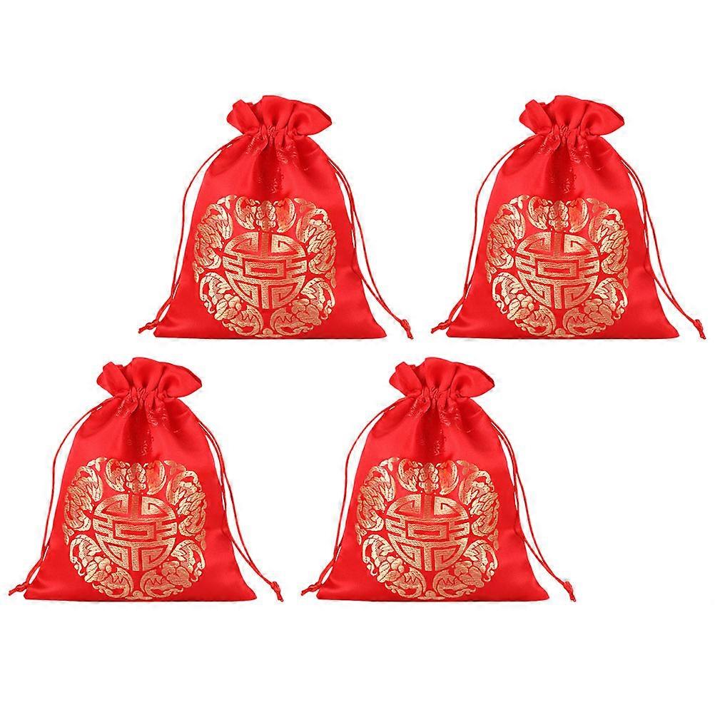 Drawstring Candy Bag for Gift Wrappers 12Pcs Red Chinese Style Pouches