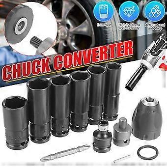 12 قطعة تأثير وجع مفك براغي عرافة مقبس رئيس أطقم الحفر تشاك محرك محول مجموعة لمفكات الحفر الكهربائية وجع