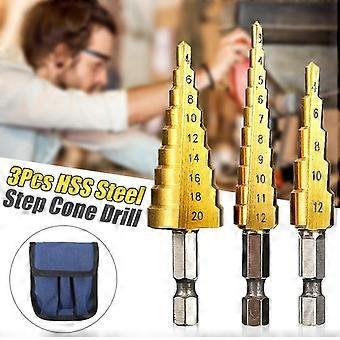 3 قطع Hss خطوة مخروط تفتق مثقاب مجموعة ثقب القاطع متري التيتانيوم المغلفة المعادن عرافة متدرجة لقم الثقب 3-12 / 4-12 / 20 مم