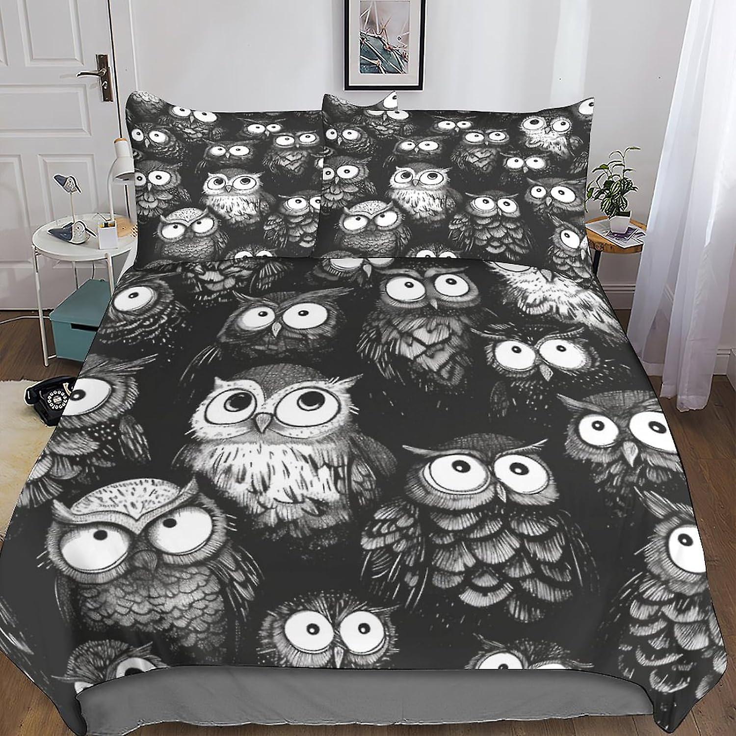 DSJackson Cut Owl 3 Pieces Duvet Cover 3D Print Animal Quilt Cover Bedding Set with Microfiber with Hidden Zipper Closure with Pillowcases Kids Adult