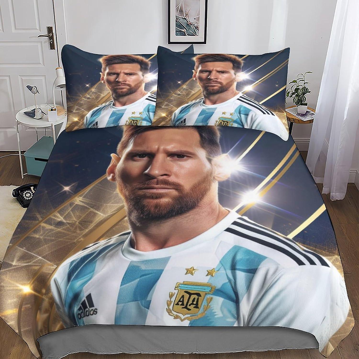 DSJackson Lionel Messi Quilt Cover Bedding Sets - 3 Pieces Set with 3D Print Sports Duvet Cover, Comforter Cover, Microfiber, Hidden Zipper Closure, P