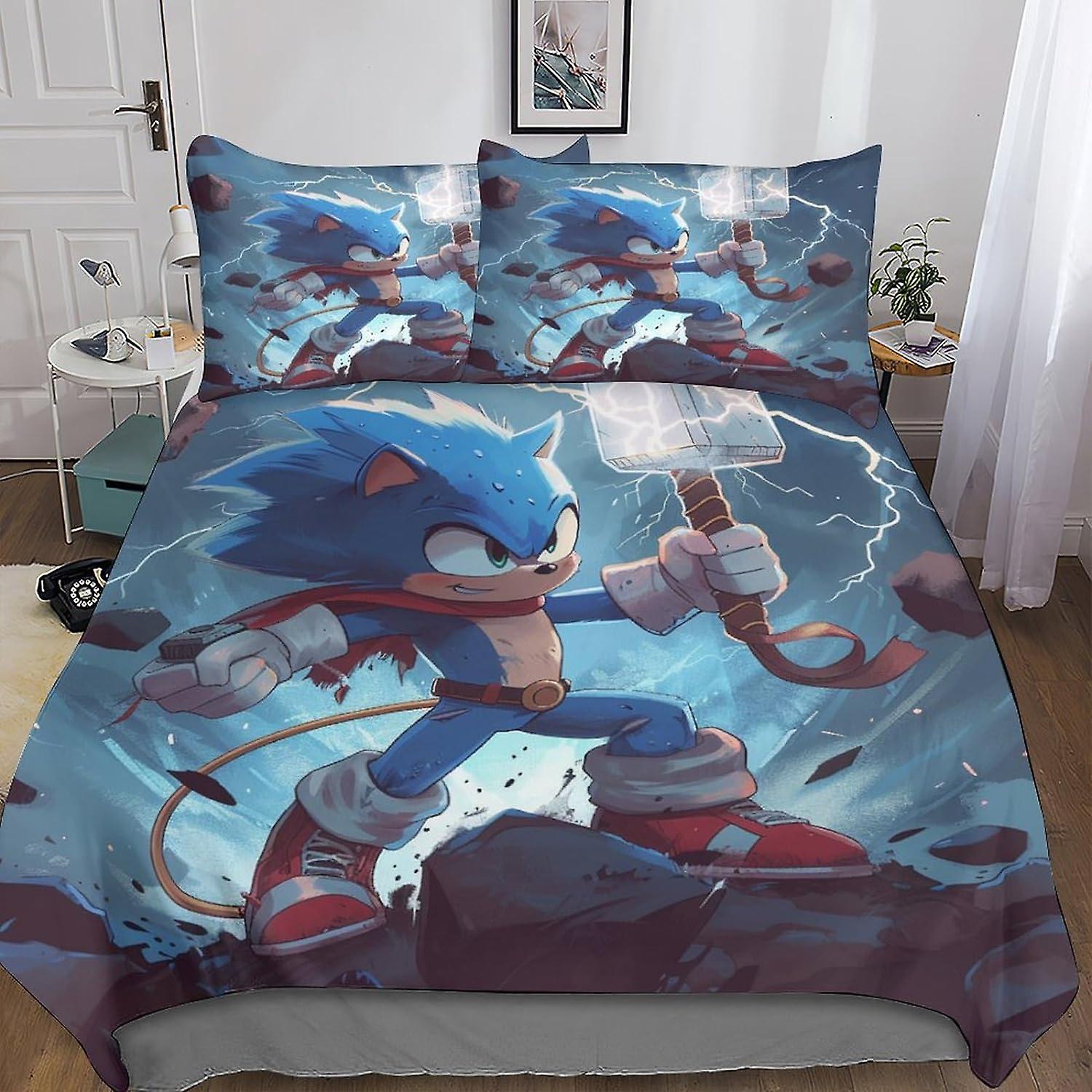 DSJackson Sonic The Hedgehog3D Print Duvet Cover Set with Hidden Zipper Closure - Microfiber Bedding Set with Pillowcases, Cartoon Quilt/Comforter Cov