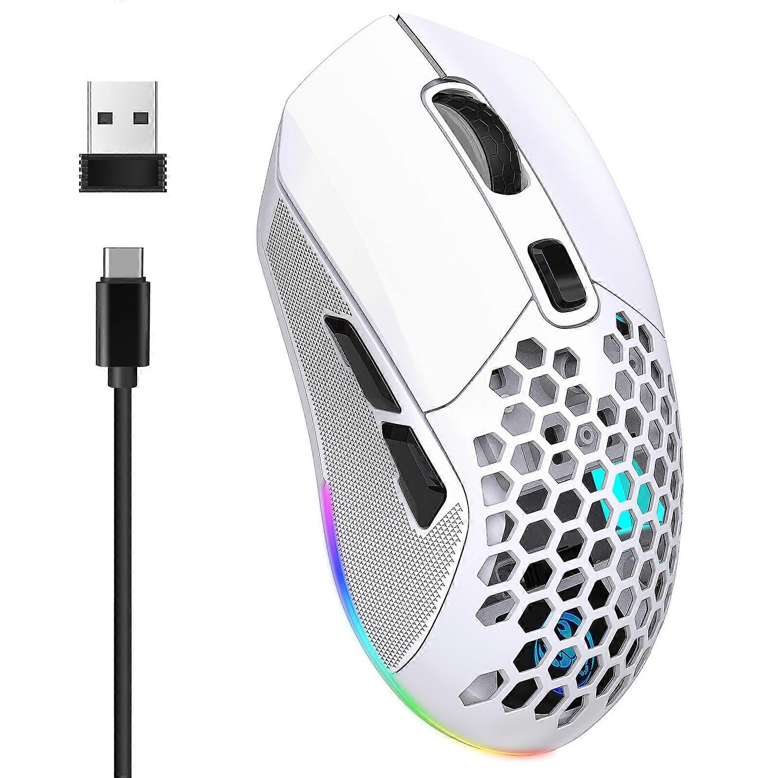 Dual-Mode 2.4G Wireless Lightweight Gaming Mouse RGB Backlit Mice & 6 Buttons Programmable Driver 4800DPI Optical Mice White