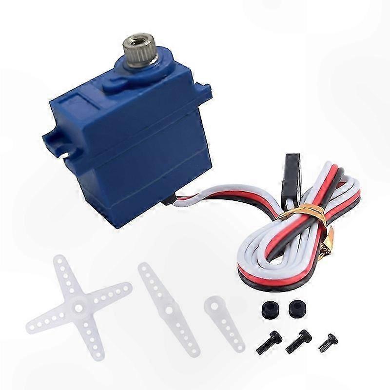 Waterproof design made of high-quality material, stronger and more durable, improves appearance. Easy to use and easy to replace. Pulse width: 1000-2000μs = 90°. Pulse width: 500-2500μs = 180°. Cored motor with stall torque of 3.5kg.cm at 6V and 4.5kg.cm at 8.4V. Dimensions: 23.2 x 12.5 x 25.6mm. Weight: 15g. Connector wire length: JR 310mm. Suitable for 1/10 TRX4, 1/10 TRX6, 1/10 Summit. Color: Blue. Material: Metal + Plastic. Package includes: 1 x RC car metal gear servo, 1 x RC car mounting accessories set. Only the items listed are included; other products are not included. Note: Light reflection and different displays may cause the color of the item in the picture to be slightly different from the real thing. Measurement allowance is +/- 1-3cm.