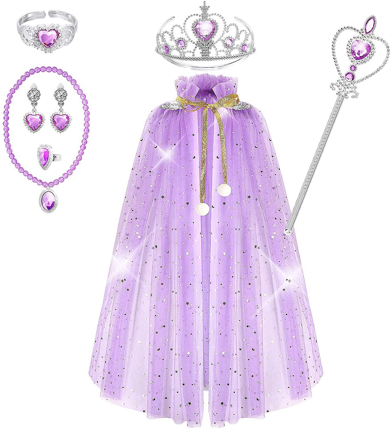 Dww-1 Piece Girls Frozen Princess Cloak Set Soft Yarn Solid Color Star Sequins Outer Cloak Girls Princess Cloak, Children's Performance Party Birthday