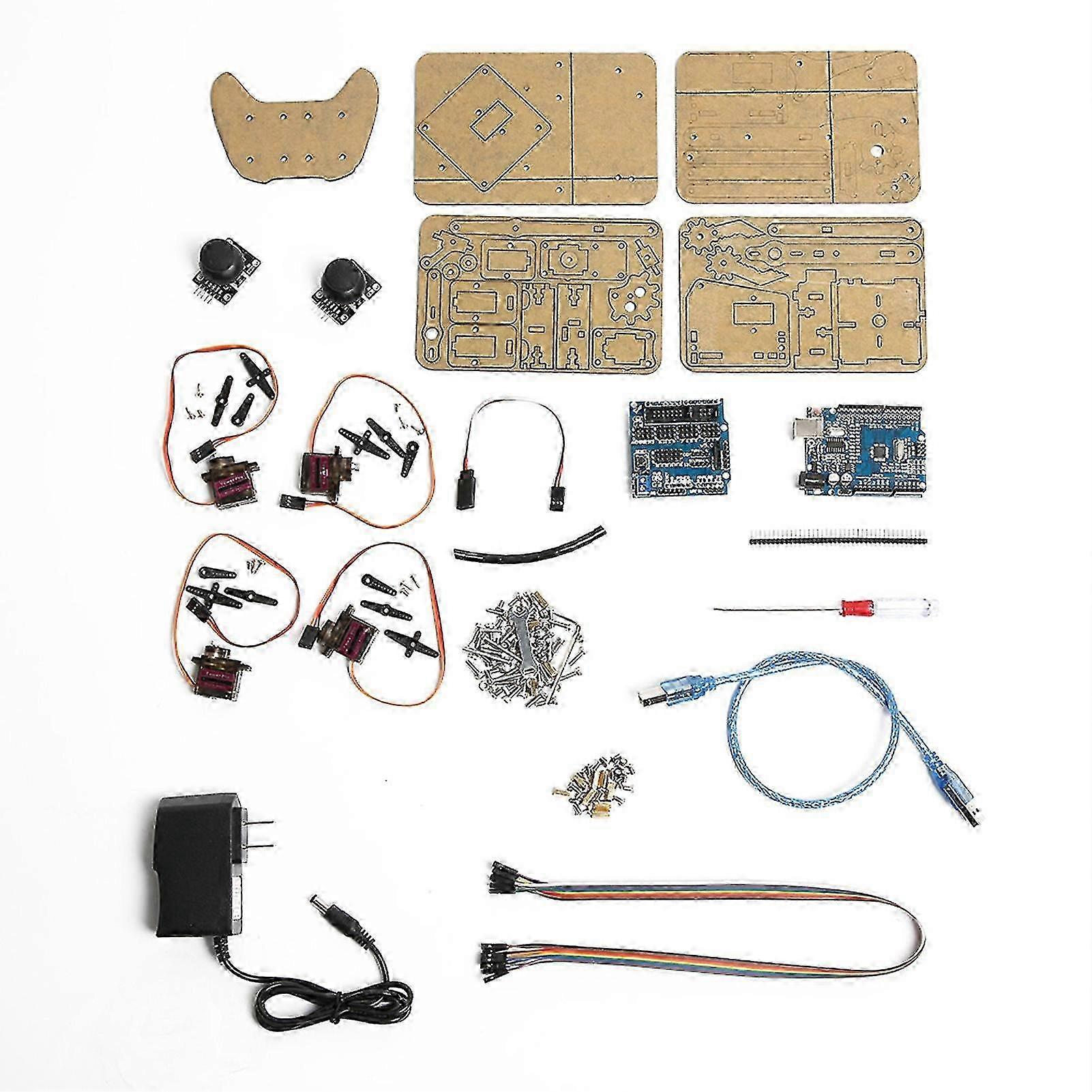 Feature 1This is a economical, powerful, easytouse robotic arm learning kit. 24 degrees of freedom robot arm with more untrammeled and flexible experience. 3The control board adopts and there are numerous learning materials in the network. 4Easy to control, you can control the action of four servo by the rockers of the game console. 5Ideal robotic arm kit for college students, middle school students, DIY enthusiasts, etc.Specification Features: This is a economical, powerful, easy-to-use robotic arm learning kit. 4 degrees of freedom robot arm with more untrammeled and flexible experience. The control board adopts for , and there are numerous learning materials in the network. Easy to control, you can control the action of four servo by the rockers of the game console. Ideal robotic arm kit for college students, middle school students, DIY enthusiasts, etc. Specification: Model: SNAM2000 Power Adapter Plug: US 100-240V Material: Acrylic Weight: Approx. 600g or 21oz Packagelist: 1 x Set of Acrylic CuttingPartsand Screws 1 x Development Board 1 x Power Adapter 5V or 2A 4 x Servo 1 x 15mm Servo Extension Cable 5cm Heat Shrink Tube 1 xHandle Acrylic Plate 2 x Game Console Rocker 10 x 50cm Ribbon Cable Female to Female 1 x v5 Expansion Board 1 x Cross Screwdriver .wang-edit-text{ font-family:'Arial' !important } .wang-edit-text table { border-top: 1px solid 000 border-left: 1px solid 000 } .wang-edit-text table td, .wang-edit-text table th { border-bottom: 1px solid 000 border-right: 1px solid 000 padding: 3px 5px } .wang-edit-text table th { text-align: center } Note: Due to the light and screen setting difference, the item's color may be slightly different from the pictures. Please allow slight dimension difference due to different manual measurement.