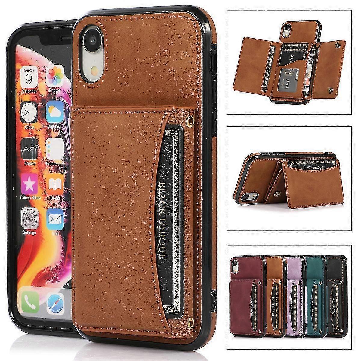 e Iphone Xr Wallet Case With Card Holder,slim Pu Leather Kickstand Card Slots Case For Apple Iphone Xr Brown