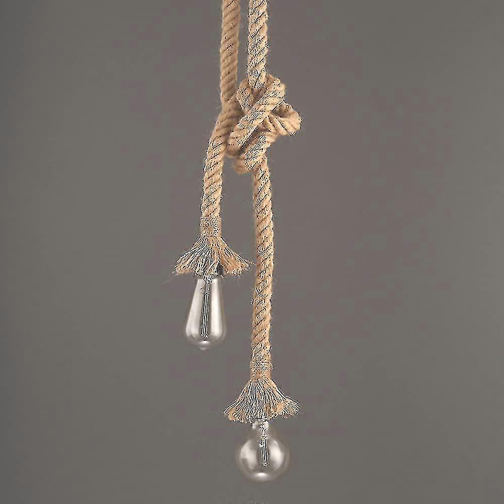 E27 Double-headed Hemp Rope Vintage Hanging Pendant Light, Industrial Retro Country Style Ceiling Li