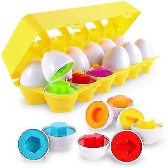 Educational Color & Shapes Egg Set - Toddler Toys & Games with 12 Colorful Eggs for Learning Fun and Development