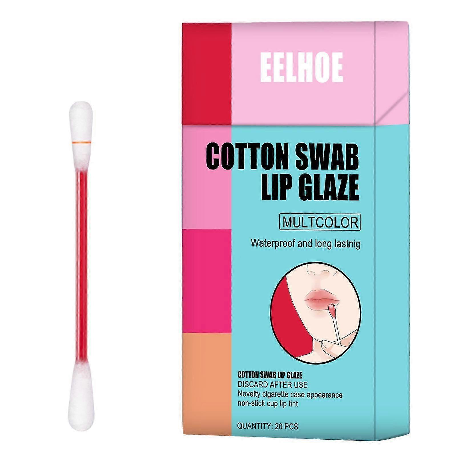 EELHOE 20Pcs/Box Cotton Swab Lip Glaze Moisturizing Long-lasting Non-stick Cup Portable Lips Makeup