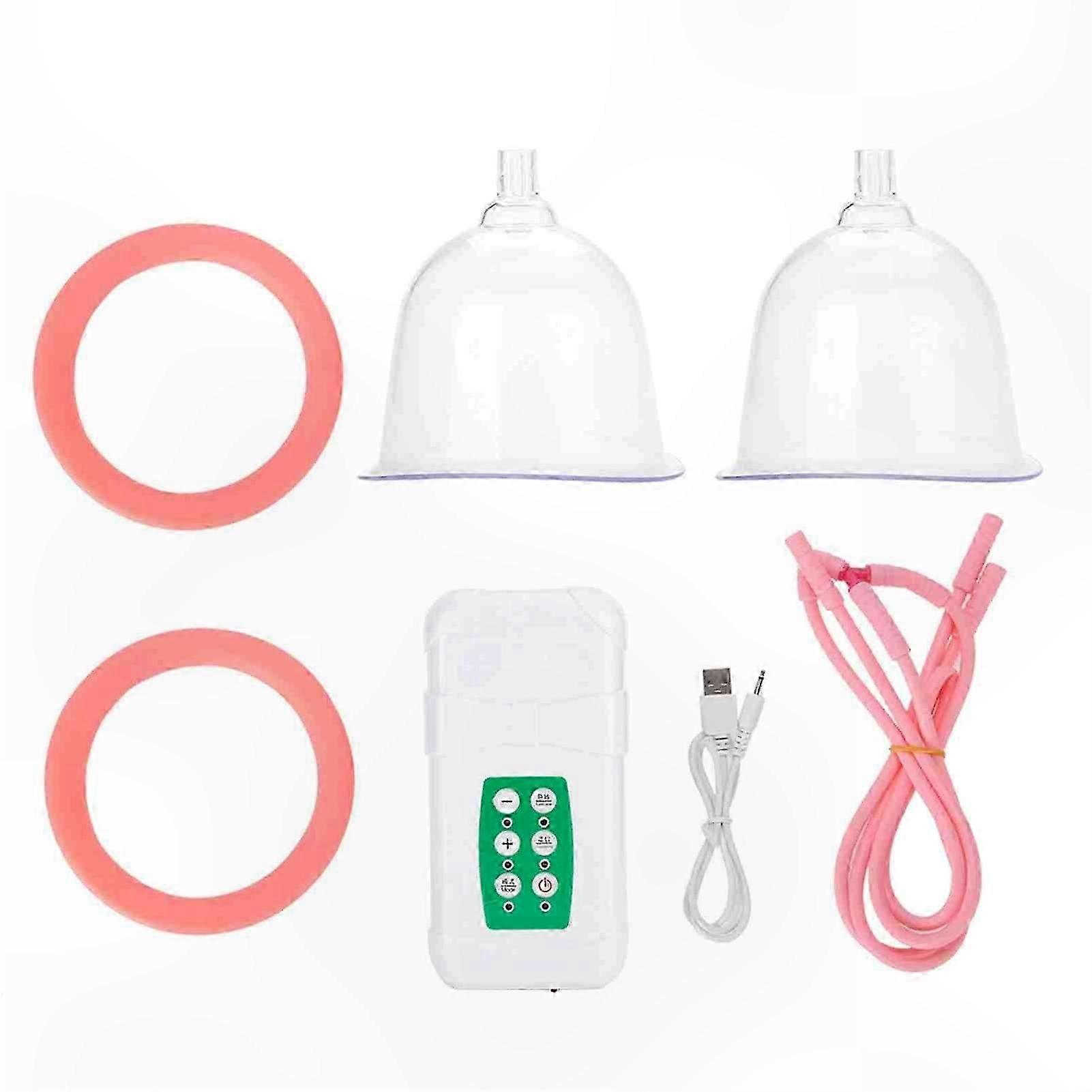 Features 1. Utilizes vacuum adsorption to support physical massage and promote micro-circulation. 2. Helps enhance breast contour and maintain firmness and elasticity. 3. Designed to support breast symmetry and focus stimulation, aiding in overall breast appearance improvement. 4. Features a silicone cup design that fits comfortably against the skin; available in medium and large sizes to suit individual needs. 5. Suitable for all skin types, designed to assist with improving appearance of underdeveloped, flat, sagging, or post-lactation breasts. 6. Includes remote control for easy operation. 60W suction power with two modes: pulse and continuous. Specification Item Type: Vacuum Breast Massager Material: Silicone Item Color: As Shown in Pictures Optional Size: Medium Cup (AB Cup), Large Cup (CD Cup) AB Cup Mouth Diameter: Approx. 12.5 cm / 4.9 inch CD Cup Mouth Diameter: Approx. 13.5 cm / 5.3 inch Item Size: Approx. 15 x 7 x 3.5 cm / 5.7 x 2.8 x 1.4 inch Power Supply: USB Charging Charge Time: Approx. 4 Hours Usage Time per Session: 15 minutes (automatically shuts off) Total Use Time: 2 Hours Intensity Levels: 3 Modes: 2 Battery: 3.7V / 1500mAh Weight: Approx. 750g Package Includes: 2 x Cups 1 x Main Unit 1 x USB Cable 1 x Connection Cable 2 x Silicone Rings