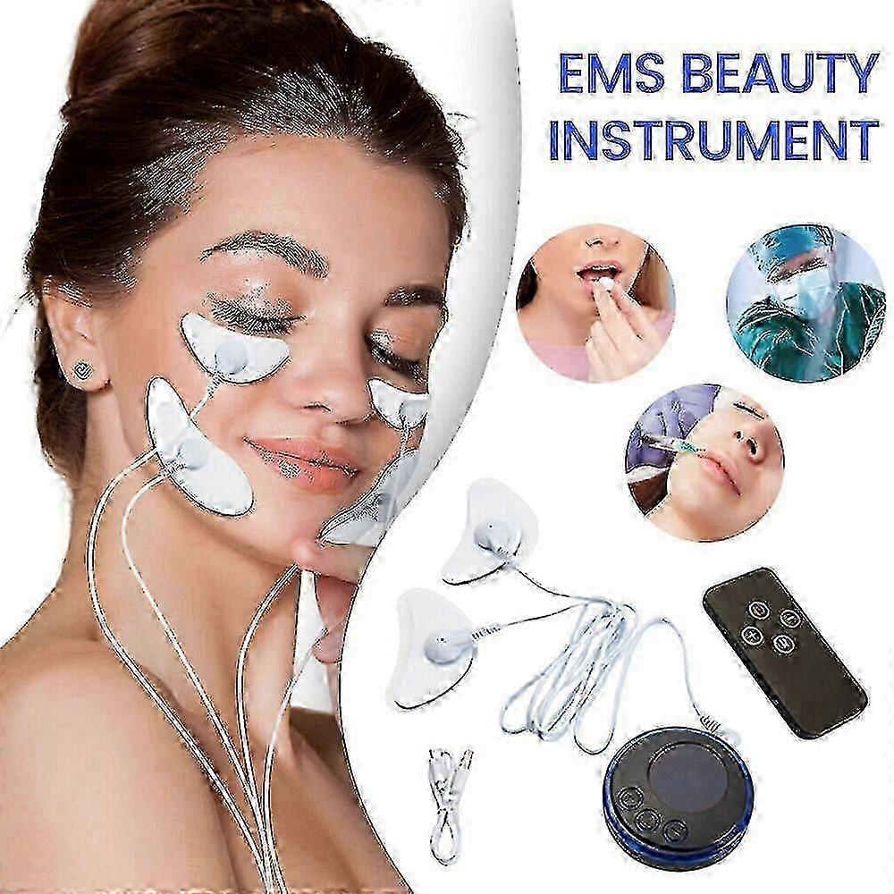 EMS Facial Body Muscle Stimulator Electrode Face Cheek Slimming Massager Features: Small and portable design, very portable to use, no constraints, built-in battery, not limited by the venue. EMS micro current stimulates muscles, tightens skin, and reduces wrinkles. Eliminate wrinkles in areas such as the neck, eyes, and face. Burning fat, local massage to lose weight, comfortable beauty equipment. Eliminate double chin and facial fat. Massage body acupoints to relax muscles and relieve fatigue. Improve physical function. Specifications: Voltage: 3.7V Usage: A-F (8 modes) 19th gear Frequency: 1-100HZ Working time: 15 minutes Output: Maximum 35mA Battery capacity: 200mAH Frequency: 1-100Hz Product List: Massage instrument 1 Charging cable 1 Instructions 1 Remote control 1 Velvet bag 1