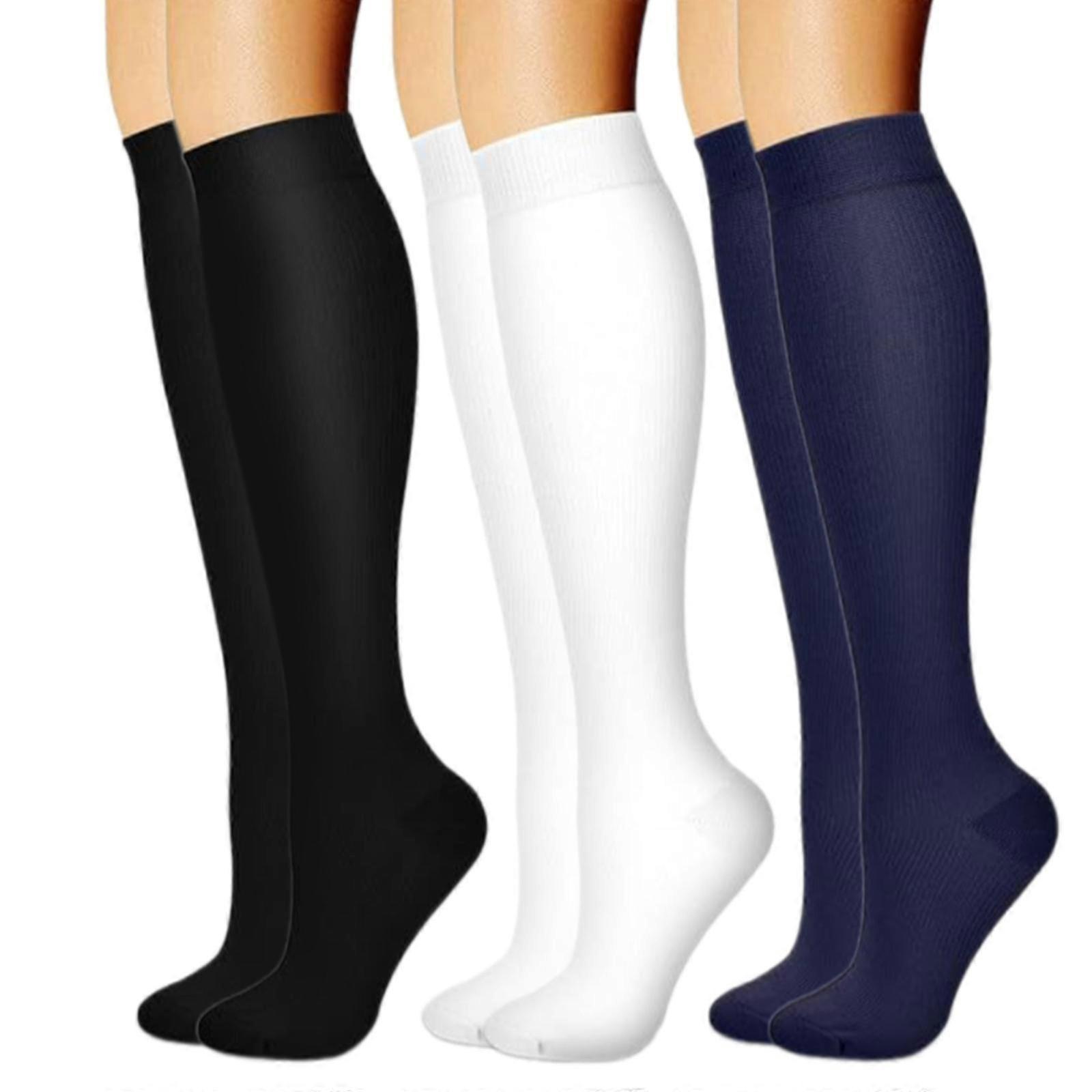 Enhanced Leg Support with 3 Pairs of Long Compression Socks for Running, Cycling and Fitness. Promotes Blood Circulation in Size 10 & XL