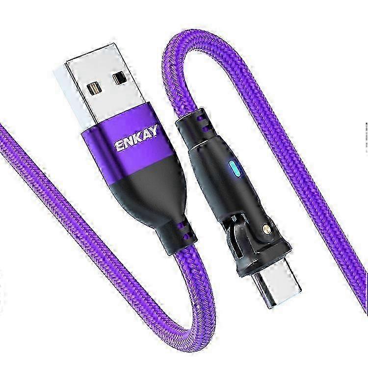 ENKAY 2m 3A Fast Charging USB to Type-C 180 Degree Rotate Nylon Braided Data Cable with LED Indicator