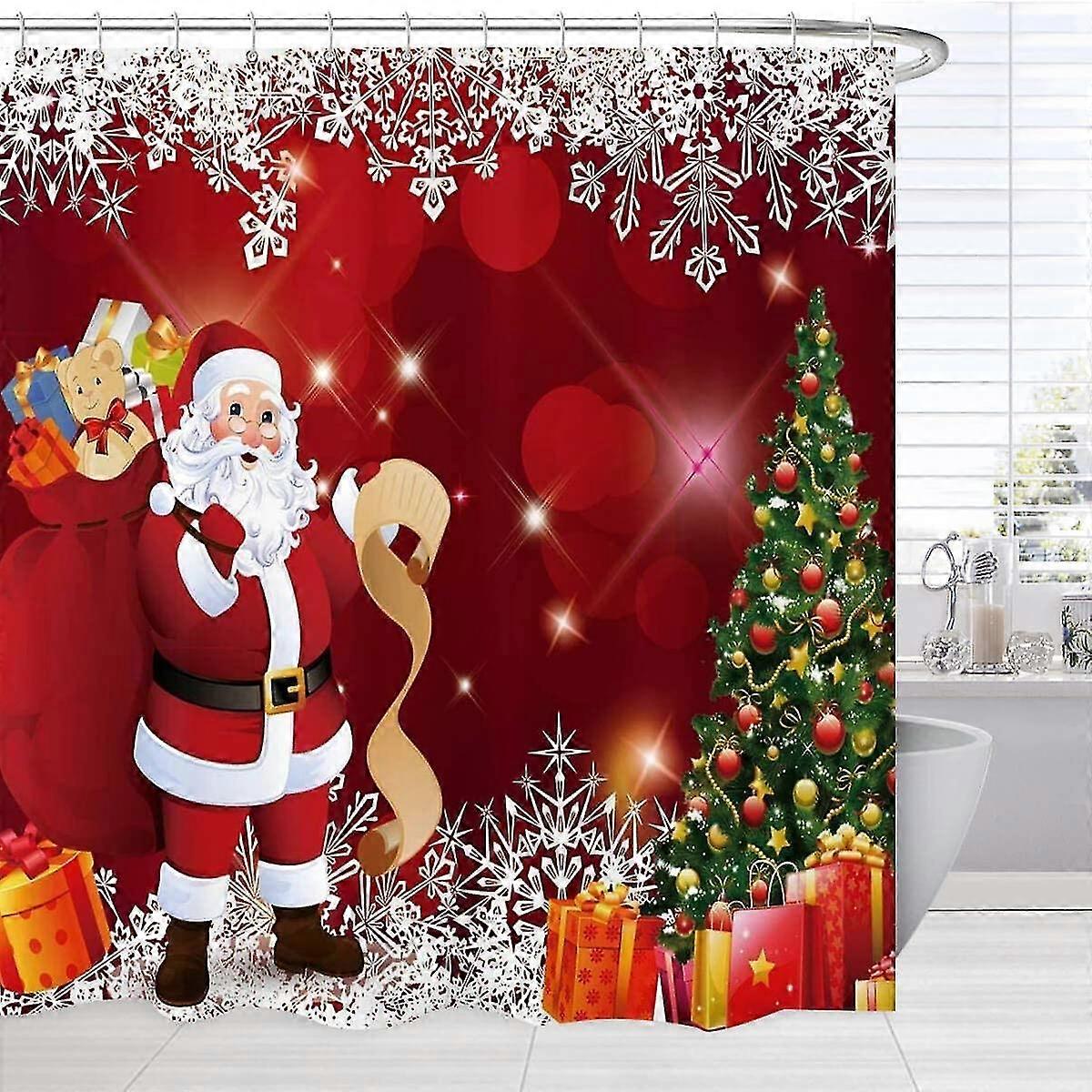 Er Ain Set , Merry Xmas Tree Ornts Santa Claus On Bath Fa Ain With Hooks, 72 X 72