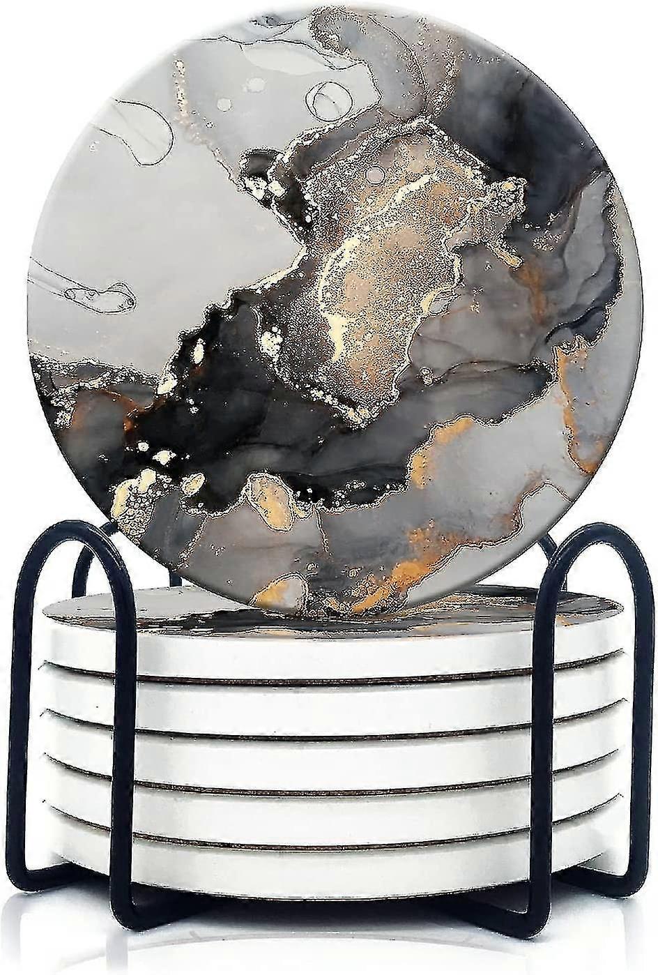 Ers For Drinks, Round Absorbent Ceramic St Ers Set Of 6,drink Ers With H, 4 Inches, Marble