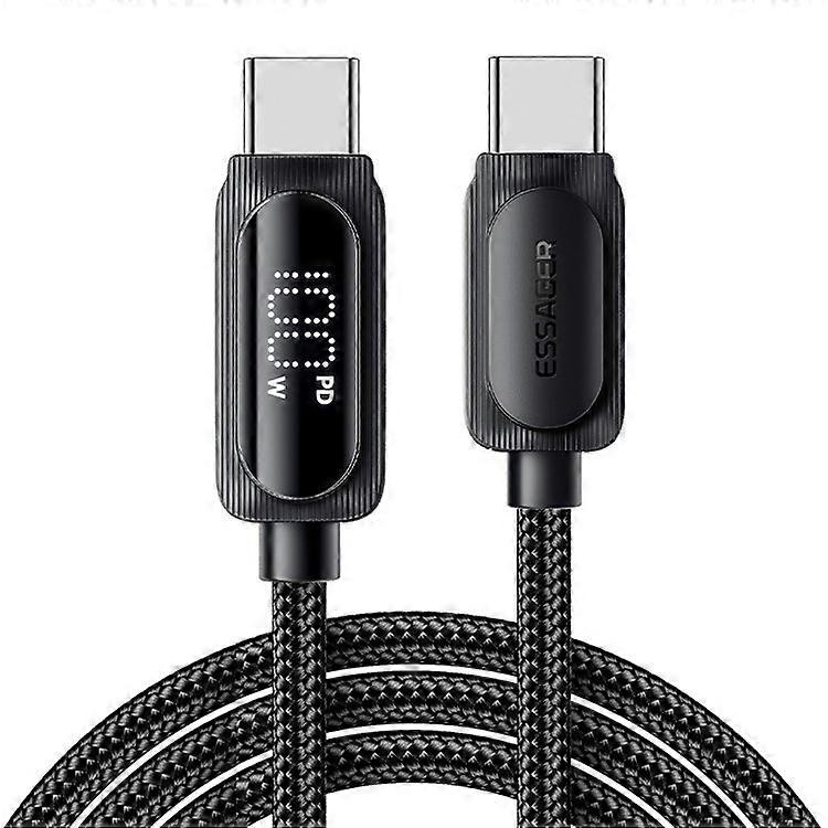ESSAGER 2m Type-C to Type-C PD 100W Data Cable Digital Display Braided Fast Charging Cord