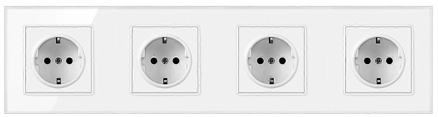 Eu Plug Power 4 Gang Sockets 16A 250V Wall 4 Way Outlets White Glass Panel Germany Quadruple Socket