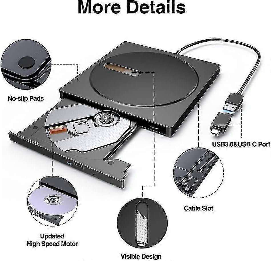 External Bluray Drive, Portable 3D Blu-ray DVD Writer for Windows XP/7/8/10/11 MacOS, Advanced Burning Technology Ultra-Slim Portable Bluray