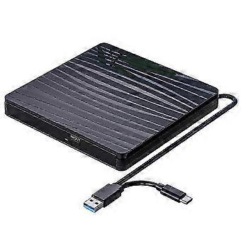 External CD/DVD Drive for Laptop, USB 3.0 & Type-C Portable CD DVD +/-RW Burner Optical Drive Reade js