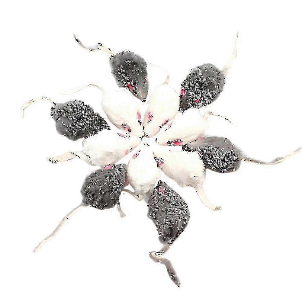 f 12pcs False Mouse Cat Pet Toys Cat Long-haired Tail Mice Sound Rattling Soft Real Rabbit Fur Sound