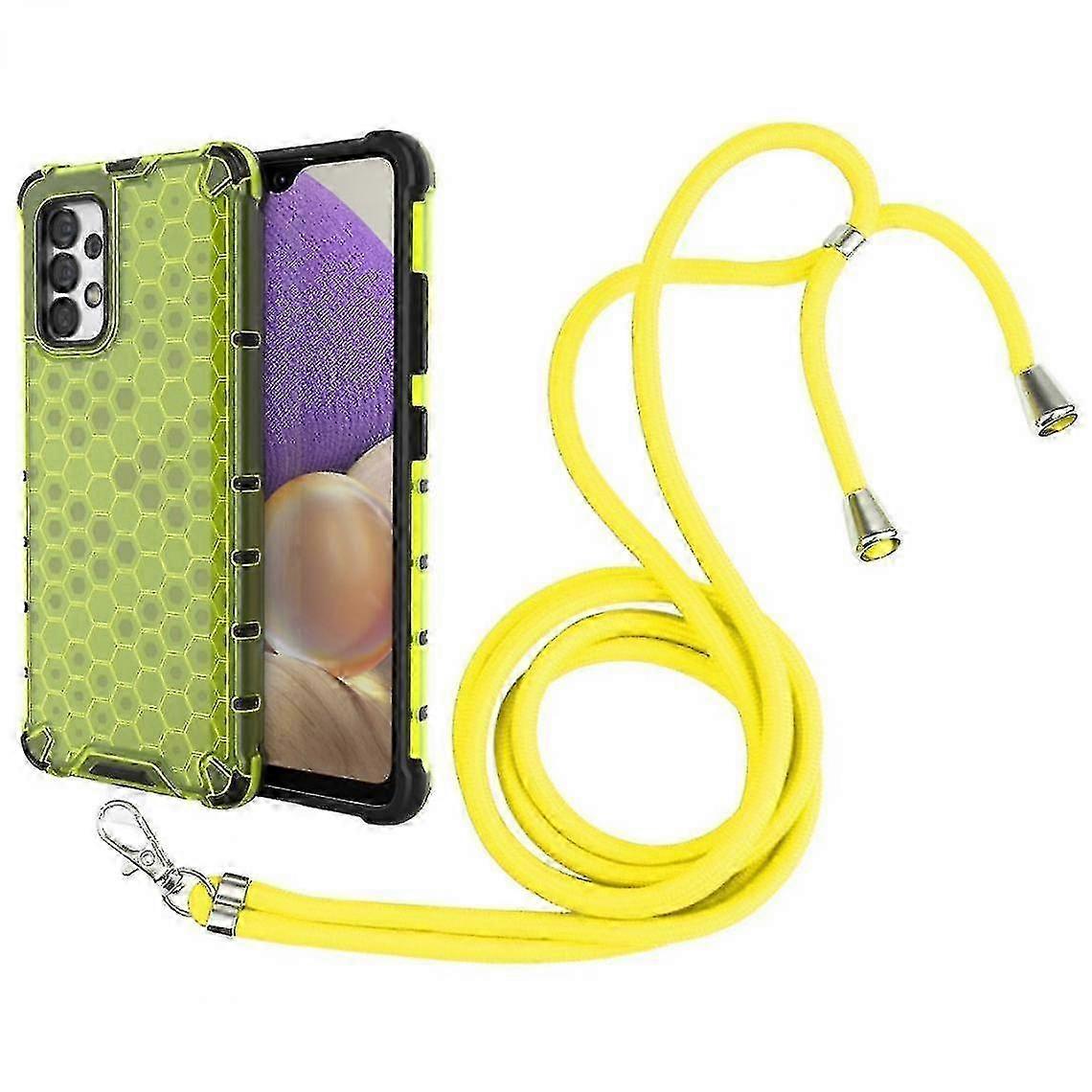 f Honeycomb Texture Tpu Case With Green Hanging Cord For Your Samsung Galaxy A32 4g (eu Version)