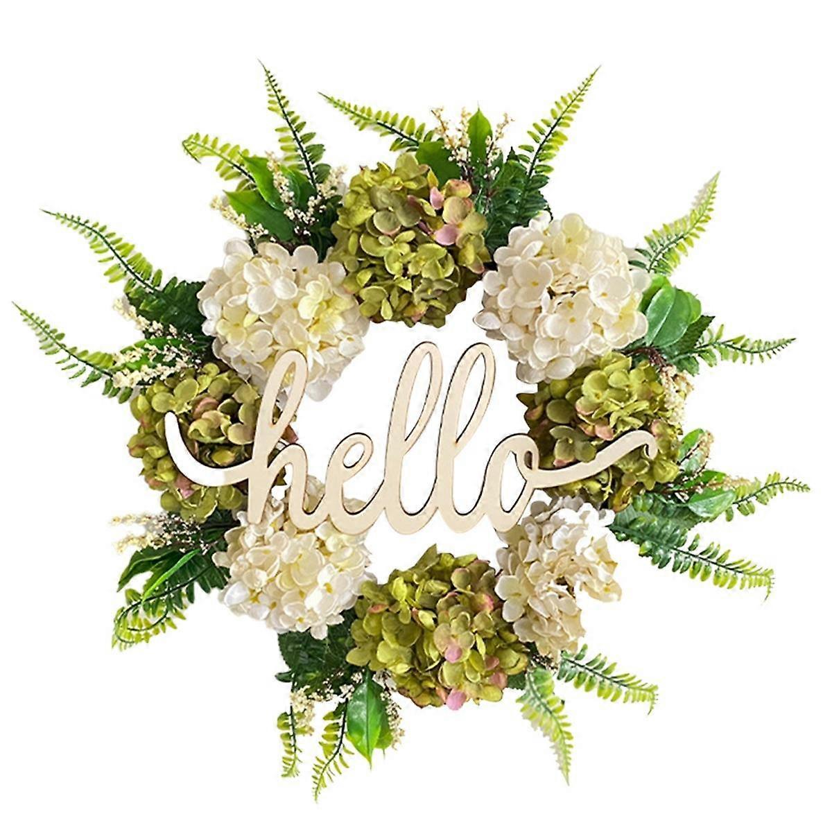 Handmade Hydrangea Wreath Green White Artificial Spring Summer Farmhouse Floral Flower Wreath for F