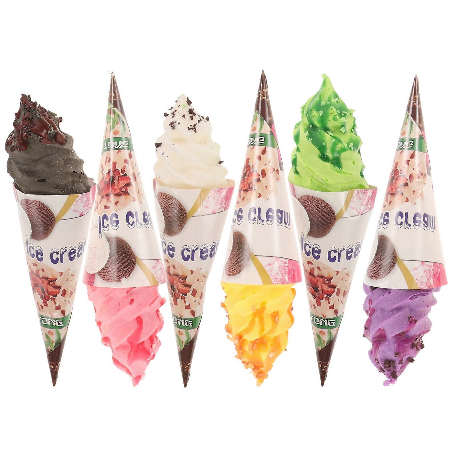 Fake Ice Cream Cone Simulation Ice Cream Toy for Children Plastic Assorted Color with Decoration 6Pcs