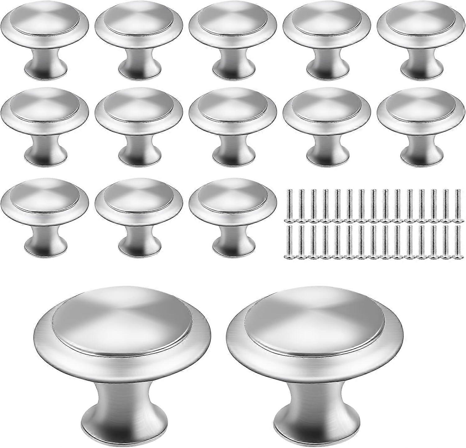 Knob Dimensions: Cabinet kitchen knobs are 1-1/5" in diameter; base is 5/8" in diameter; height is 15/16"High-quality material: These drawer pulls are made of high-quality stainless steel, which is lightweight, durable, scratch-resistant and wear-resistant, not easy to break, and can be used for a long timeStylish Design: Simple and elegant mushroom head design, Brushed Nickel Silver has a clean and timeless look, bringing a sophisticated look and high-quality touch to your home.Wide Application: Our silvery drawer knobs can be used on kitchen cabinets, furniture doors, closets, cupboards, desks, bookcases, wardrobes, dresser drawers, and more.Package Included: You will receive 30pcs Round Kitchen Cabinet Knobs and 30pcs screws, enough to meet your various daily needs and replacements; The screws included in the package help to simplify your work and increase the efficiency of the installation process