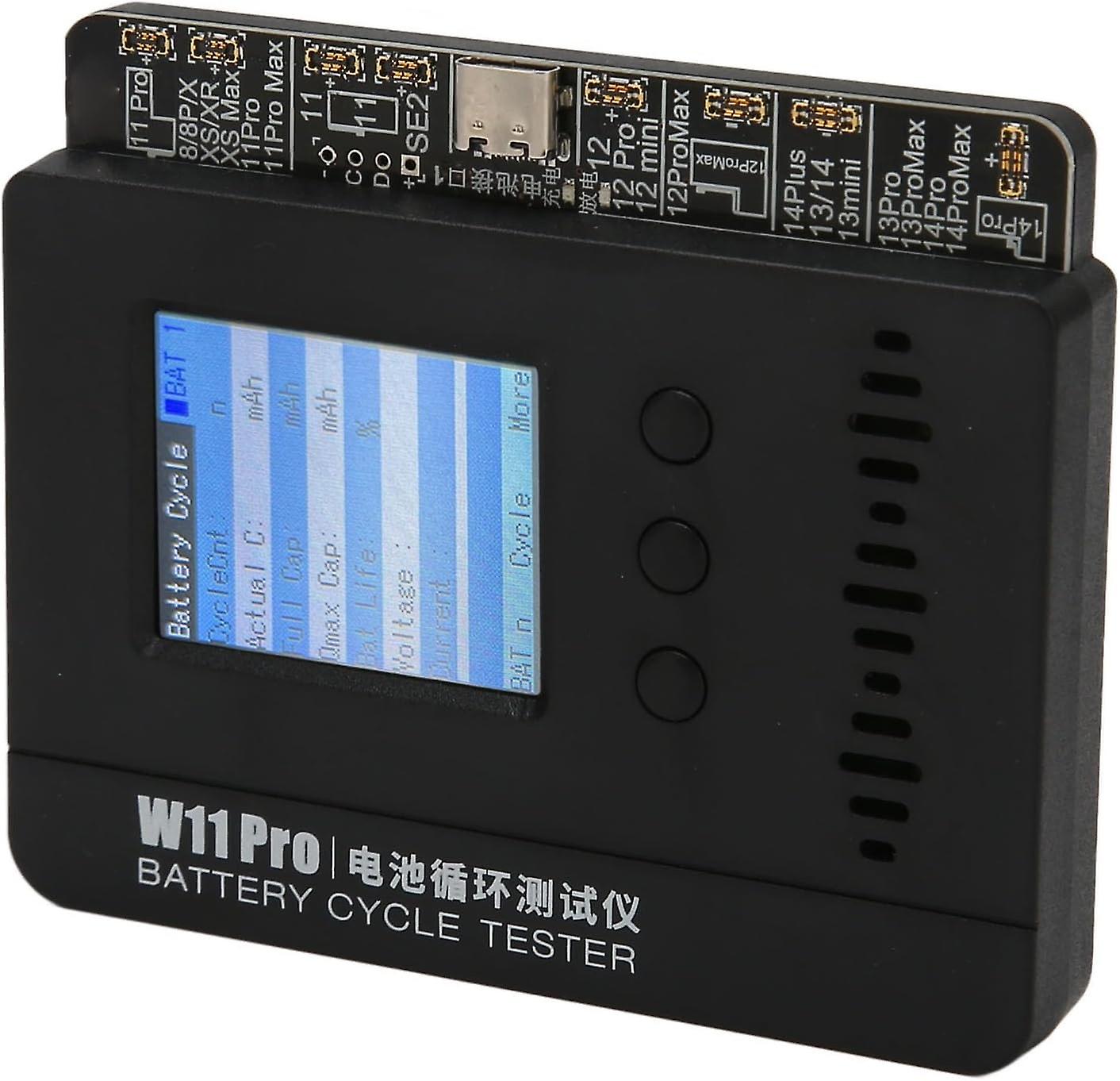 Compatible Models: This small battery tester is suitable for IOS 8, 8P, X, XR, XS, XSMax, 11, 11Pro, 11ProMax, 12, 12Pro, 12ProMax, 12Mini, 13, 13Pro, 13ProMax, 13Mini, 14, 14Plus, 14Pro, 14ProMax. Automatic Parameter Matching: With automatic parameter matching, the battery cycle tester is able to perform various performance tests, charge and discharge testing, record keeping, and computer software curve assistance, ensuring optimal results for each specific battery model. Efficient Battery Repair: Say goodbye to inefficiencies caused by replaced battery cores. The battery cycle tester efficiently repairs battery efficiency and cycle issues while being stable, error free and with low power consumption. Comprehensive Battery Testing: The battery cycle tester comes loaded with a battery detection and repair function, which allows you to both repair and modify battery data, and check if the battery data is normal, ensuring that batteries are in great condition. Ergonomic Design: The battery cycle tester features a size that fits naturally in your hand and a user centric design that provides a comfortable and easy to use experience.