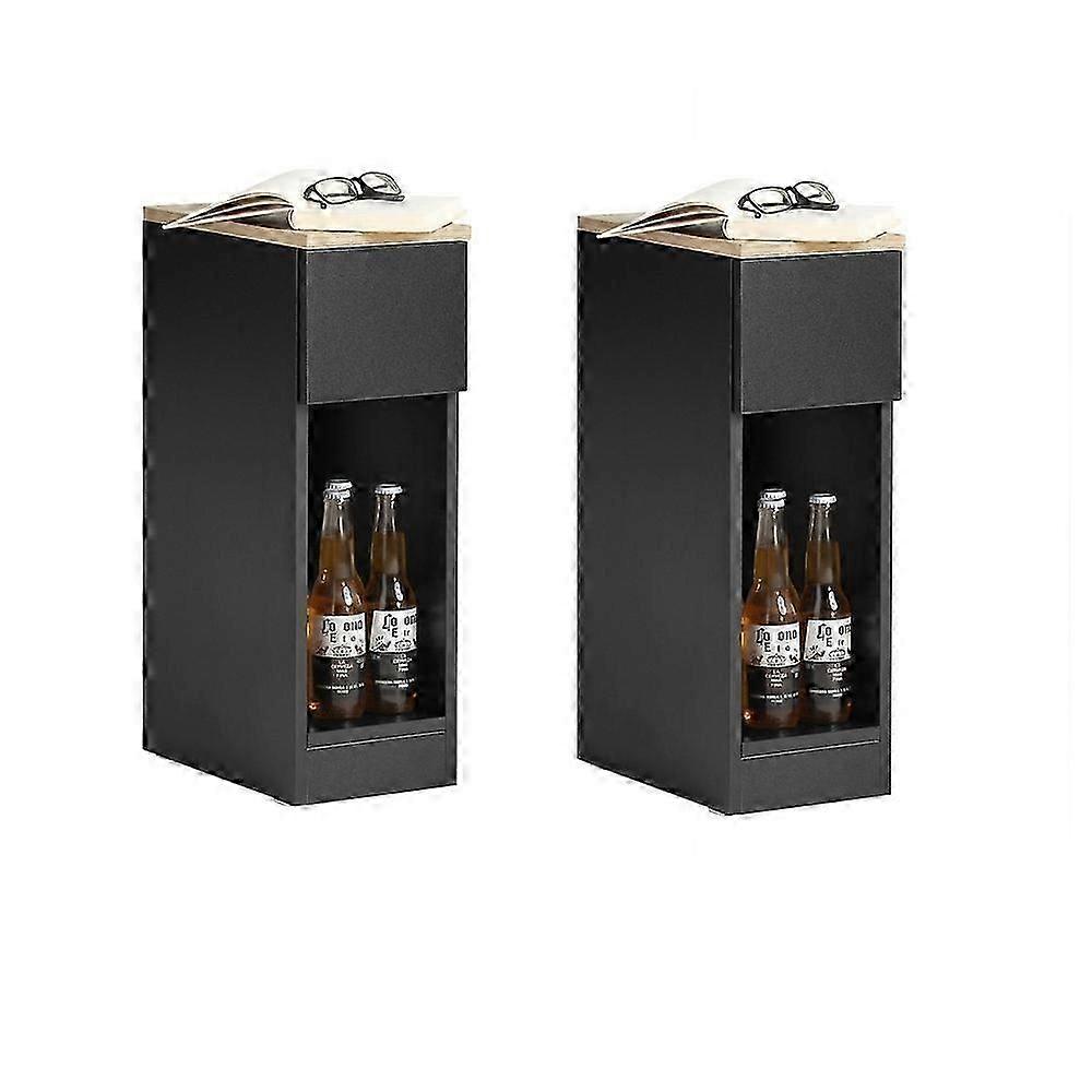 FBT111-WNx2,Set Of 2 Bed Side Table Sofa Narrow Side Table Nightstand with Drawer and Shelf End Table Lamp Slim Bedside Table 20cm Wide