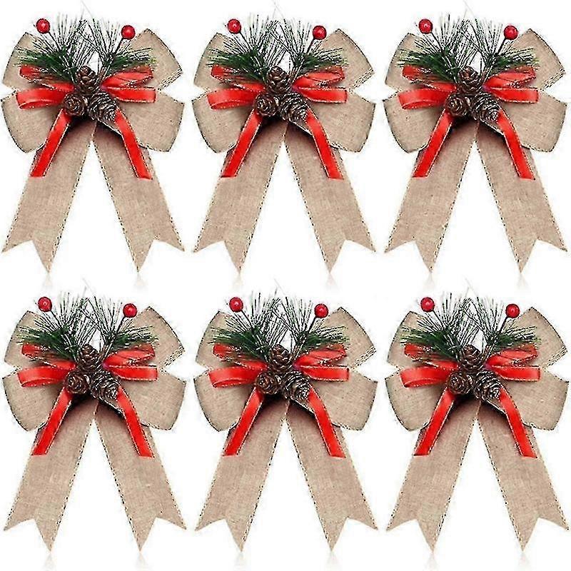 Rich Packaging: Allows you to create a cohesive and unified holiday decoration theme. Use them all on your Christmas tree or scatter them throughout your home to make every corner full of festive atmosphere, or share them with friends and neighbors.<br> High-quality materials: These Christmas bows for decoration are made of Flannel to withstand the elements during the holiday season; the additional embellishments of artificial pine cones and pine needles add a real winter atmosphere, thereby enhancing the overall festive atmosphere of your home, not easy to fade or break, and can be used for a long time.<br> Easy to hang: These small decorative Christmas bows come with a convenient hanging strap, which is simple and straightforward to hang, which means you can easily place it on your Christmas tree, front door, porch, wreath, fireplace, gift basket or other items to add of festive charm.<br> Multiple uses: These Christmas bows with pine cones are perfect for Christmas and other occasions, and are versatile works for making crafts; it is not only an ideal addition to your Christmas tree, but also a beautiful decoration for , doors, crafts, gift boxes, etc.; its universal charm ensures that it fits perfectly into any space and enhances the festive atmosphere wherever it is placed.<br> Type:D:Burlap Bow<br> Colour:As Shown<br> Material:Flannel<br> Package Contents:<br> 12 * Bow knot<br> Only the above package content, other products are not included.<br> Note: Light reflection and different displays may cause the color of the item in the picture a little different from the real thing. The measurement allowed error is +/- 1-3cm.