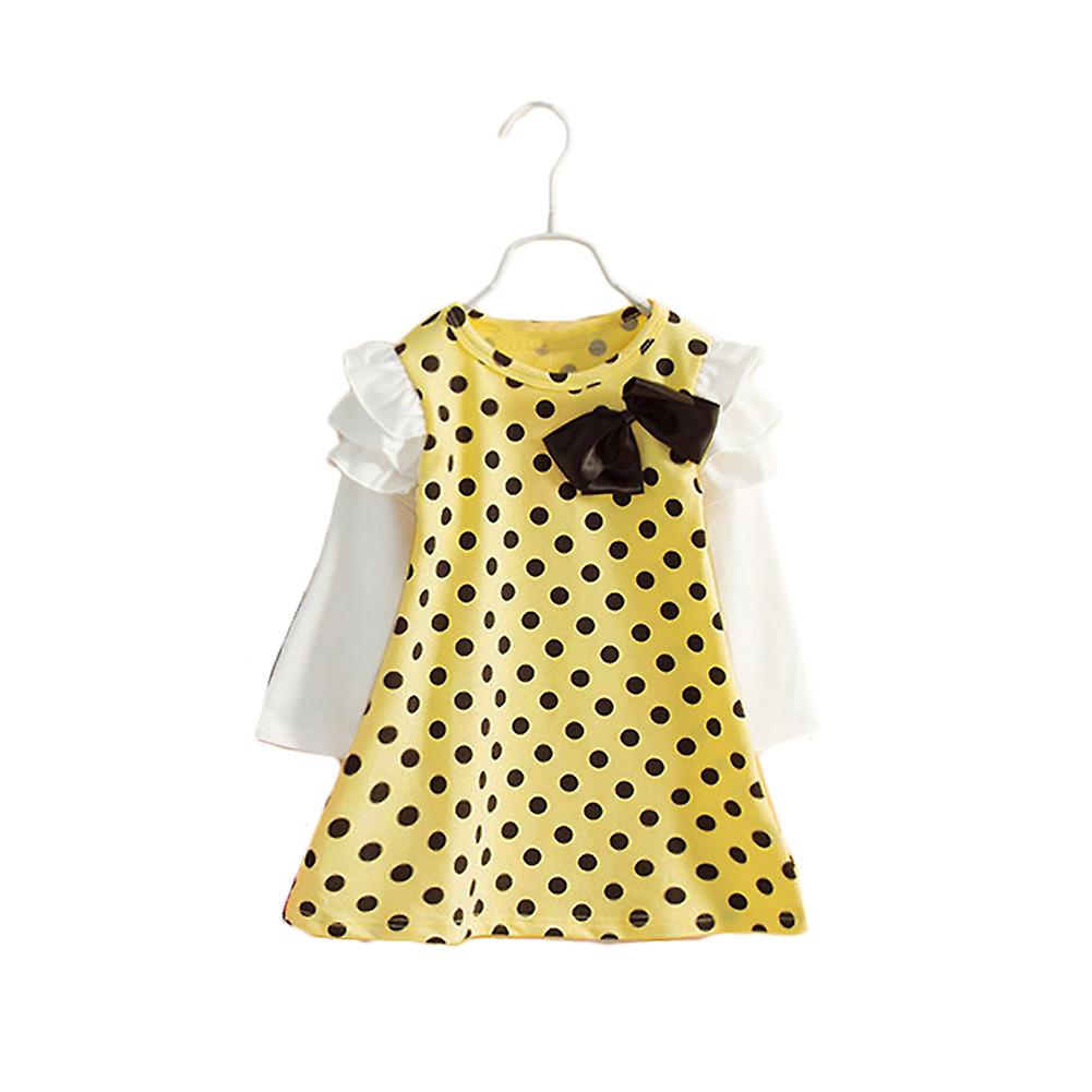 Fianao Spring Baby Girl Long Sleeve Polka Dot Bowknot Ruffle Mini Dress Kids Clothes
