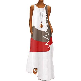 Fianao المرأة خمر يا الرقبة بلا أكمام اللون كتلة متموجة خط جيوب فستان طويل فضفاض